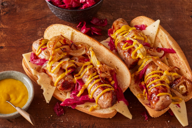 Veggie atau Vegan Hot Dog – Alternative sehat dengan sosis dengan bahan nabati dan roti gandum utuh.